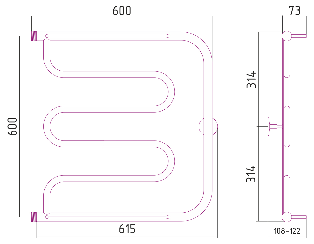 Полотенцесушитель водяной Стилье ТАНДЕМ 00016-6060 600х600