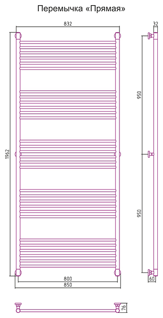 —Полотенцесушитель водяной Сунержа БОГЕМА+ прямая 1900х800