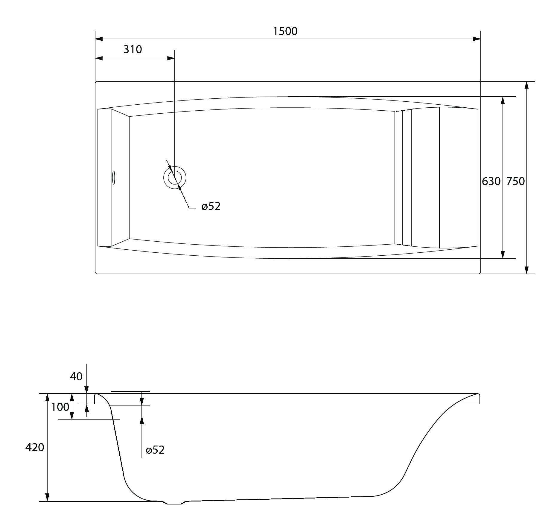 Ванна акриловая Cersanit VIRGO 63352 150x75 см.
